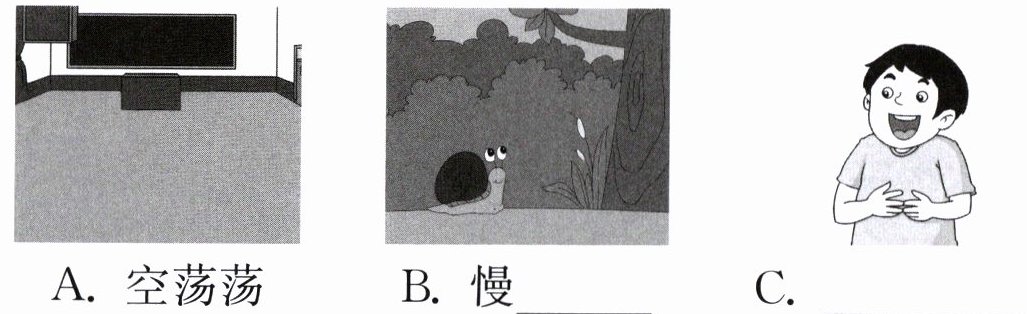 三、(新角度)观察图片,照样子,把词语补充完整,再选词填空(填序号)。(5 分)