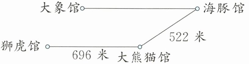 (2)24÷12=2 696×2=1392(米) 1392-522=870(米) 答:海豚馆到大象馆有870米远。
