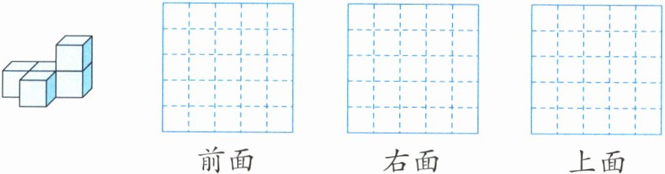 2. 用5个同样大的正方体摆一摆,摆成的物体从前面看到的是,