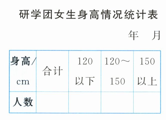 | 身高/cm | 合计 | 120以下 | 120~150 | 150以上 |