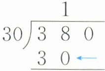 5. 学校新买来380根跳绳,每班分30根,可以分给多少个班?还剩多少根?下面是竖式计算的过程,箭头所指的数表示( )。