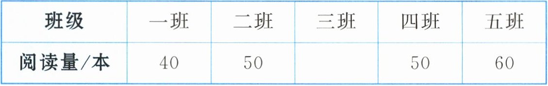 5. 在读书活动中,四年级5个班学生一周的课外阅读量情况如下。