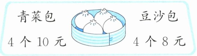 青菜包 4 个 10 元 豆沙包 4 个 8 元