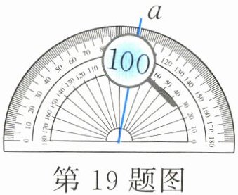 19. 如下图,如果射线a是一个$40^{\circ }$角的一条边,那么这个角的另一条边可能与这个量角器外圈的( )°刻度线重合,也可能与这个量角器外圈的( )°刻度线重合。