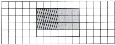 先在图中画一个长6厘米、宽是长的$\frac {2}{3}$的长方形,再在这个长方形中表示出$\frac {3}{4}× \frac {1}{2}$。