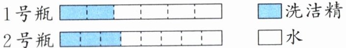7. 两个完全相同的瓶中都加满了洗洁精和水,下图表示两个瓶中洗洁精与水的比。把两个瓶中的洗洁精和水全部混合在一起,混合后洗洁精与水的比是( )。