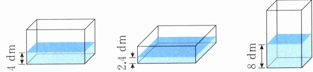 6. 一个密封的长方体玻璃容器中装了120升的水,将容器按如图所示的三种方式放置后,分别测量出水的高度。该长方体容器的表面积是( )平方分米。(玻璃的厚度忽略不计)