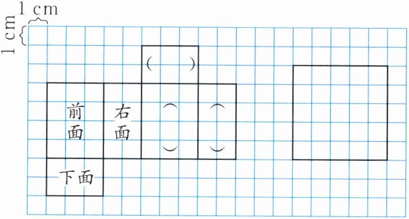 1. 下图是一个长方体的表面展开图,已经标出了三个面,请在图上标出另外三个面。这个长方体的体积是( )立方厘米。(4分)