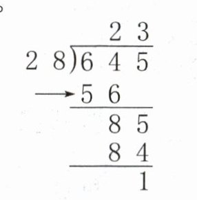 2. 新趋势 算理理解 鲜花店有645枝花,做一个花篮需要28枝。这些花能做多少个花篮?鹏鹏列了一个竖式(如图),竖式中的“56”表示(