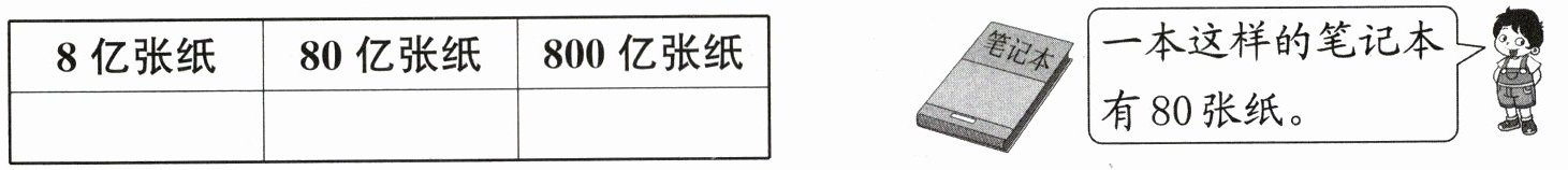 1亿本笔记本的纸张数:$100000000 × 80 = 8000000000$(张),即80亿张。