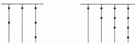 5. 新情境 传统文化《周易》中有“上古结绳而治”,它指的是“结绳计事”或“结绳计数”。一位牧羊人从右到左在绳子上打结,满 5 进 1,用来记录放羊的只数。左下图表示$58(3+1×5+2×5×5= 58)$只羊,右下图表示(