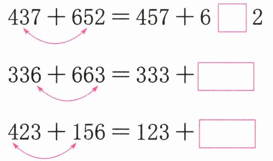 解析:交换两个加数相同数位上的数字,它们的和相等,通过对比等号两边的加数得到结果。