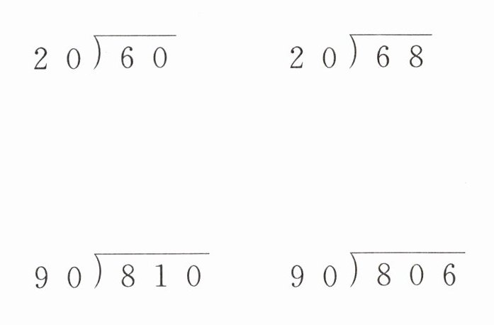 3 20)60 60 0 3 20)68 60 8 9 90)810 810 0 8 90)806 720 86