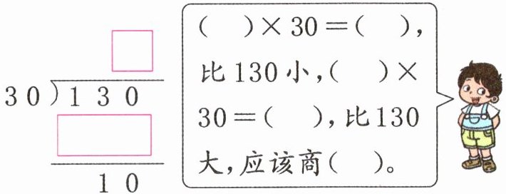 5 3 1 解析:如果420÷□0=7,那么除数是420÷7=60,在除法算式中,被除数不变,除数变小,商就会变大,所以□0一定比60小,由此填数;如果□□0÷80=4,那么被除数是80×4=320,在除法算式中,除数不变,被除数越小,商就会越小,所以□□0一定比320小,由此填数。