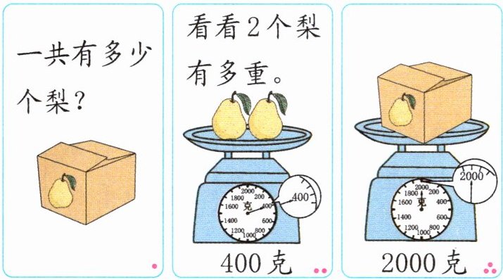 5. 若每个梨的质量相同,则一箱梨一共有多少个?(不考虑箱子的质量)