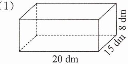 (1)表面积:$20×15×2+20×8×2+15×8×2=1160$(平方分米) 体积:$20×15×8=2400$(立方分米)(2)表面积:$12×12×6=864$(平方厘米) 体积:$12×12×12=1728$(立方厘米)