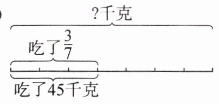 (1)解:设原来一共有x千克。$\frac{3}{7}x=45$ $x=105$ (2)解:设丁丁有x张。$\frac{4}{5}x=84$ $x=105$