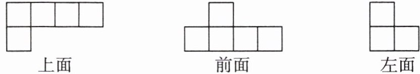 2 (重点题)东东用几个棱长是1分米的正方体摆成一个物体,下面是从不同的方向看到的图形。这个物体的体积是多少立方分米?