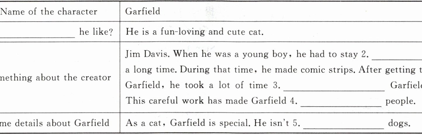 Ⅰ.阅读填表(主题:文学、艺术与体育·卡通与漫画)