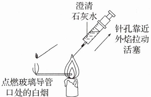 B.注射器中的澄清石灰水变浑浊,说明蜡烛燃烧产生$CO_2$