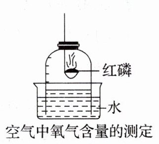 (2)待红磷熄灭并冷却至室温后,打开弹簧夹,此时烧杯中的水沿导管进入集气瓶中,集气瓶内水平面上升约为上部空气体积的$\frac{1}{5}$,这个“现象”可以得出有关空气中氧气含量的结论是