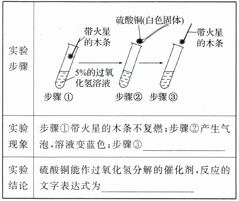 【实验探究】带火星的木条复燃 过氧化氢$\xrightarrow{硫酸铜}$水+氧气 【评价改进】质量和化学性质