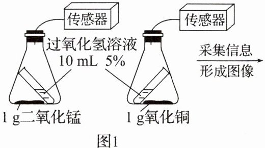 7(2024·佛山月考)为比较二氧化锰与氧化铜的催化效果,按图1所示装置进行实验,实验时倾斜锥形瓶使过氧化氢溶液与催化剂接触,瓶内气压的变化如图2所示。下列说法错误的是 (
