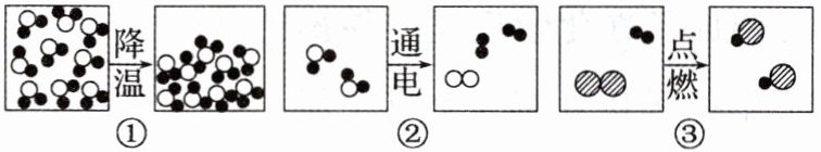 (填“得到”或“失去”)电子。Ⅱ. 如图分别是水蒸气液化、水通电分解和氢气在氯气中燃烧的微观变化示意图。