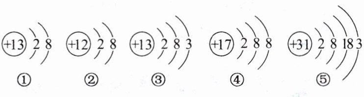 )① (+13) 2 8 ② (+12) 2 8 ③ (+13) 2 8 3 ④ (+17) 2 8 8 ⑤ (+31) 2 8 18 3