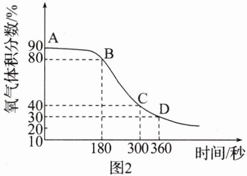 【操作与分析】(1)按图1连接好实验装置,打开氧气传感器,测得前3分钟曲线为图2中AB段,请从分子的性质角度回答氧气体积分数下降的原因是
