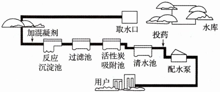 8 供城市生活用水的自来水厂净水流程如图所示,请填空: