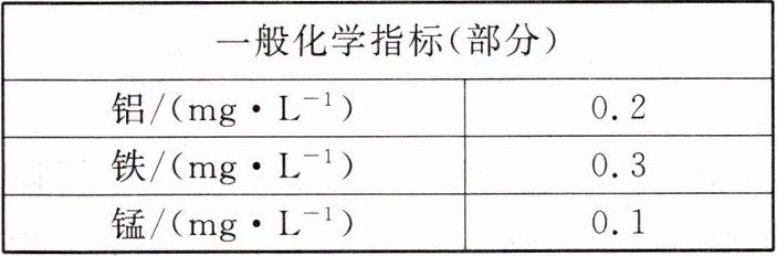 (1)我国从2023年4月1日起实施新版《生活饮用水卫生标准》,如表是新标准中部分化学指标,其中的铝、铁、锰是指