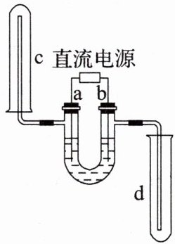4 装置创新 用如图所示装置完成电解水的实验并收集产生的气体(U形管中预先加入少量的氢氧化钠,c、d两支试管容积相等),下列说法不正确的是(