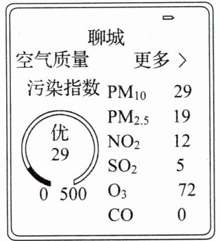 7(2023·聊城中考)2023年3月23日世界气象日主题为“天气气候水,代代向未来”。如图是世界气象日聊城当日天气状况的手机截屏,图中计入空气污染指数的有害气体属于氧化物的有(