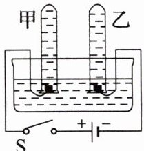 (2)闭合开关,通电一段时间后,甲、乙两试管内的气体体积比约为