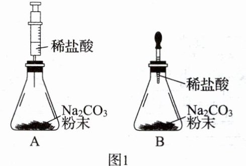 (2)A组装置中,碳酸钠和稀盐酸反应生成氯化钠、二氧化碳和水,装置内压强增大,会使注射器活塞向上移动,可通过注射器缓冲气压,而B装置中,由于反应生成了气体,装置内压强增大,容易导致橡皮塞被冲开,最佳装置是A;
