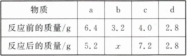 |反应后的质量/g|5.2|x|7.2|2.8|