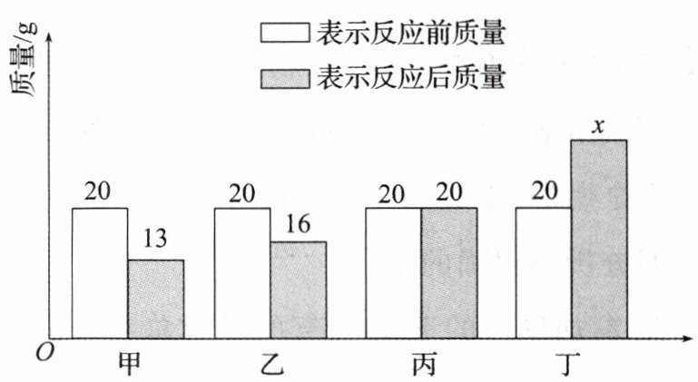 10(2024·唐山期末)一定条件下,密闭容器中发生了某一化学反应,涉及的物质为甲、乙、丙、丁,如图为各物质在反应前和反应后某时刻的质量关系。下列说法不正确的是(