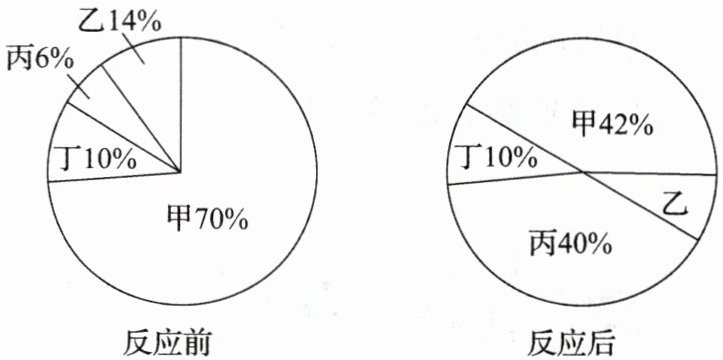 11(2023·滨州中考)密闭容器内有甲、乙、丙、丁四种物质,在一定条件下充分反应,测得反应前后各物质的质量分数如图所示。下列说法正确的是 (