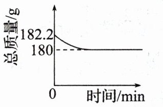 9 取一定量碱式碳酸铜[$Cu_2(OH)_2CO_3$]粉末放入烧杯中,加入稀硫酸至恰好完全反应(假设气体全部扩散),测得实验过程中烧杯及烧杯内物质的质量随时间变化关系如图所示。