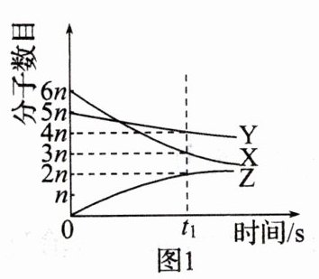 6(2023·潍坊中考)某化学反应在密闭容器中进行,各物质的分子数目、质量随时间变化情况如图1、图2所示。下列说法错误的是 (