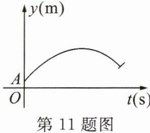 11. 如图,某足球运动员站在点$O$处练习射门,将足球从离地面$0.5m的A$处正对球门踢出(点$A在y$轴上),足球的飞行高度$y(m)与飞行时间t(s)之间满足函数关系式y= at^{2}+5t+c$,已知足球飞行$0.8s$时,离地面的高度为$3.5m$.