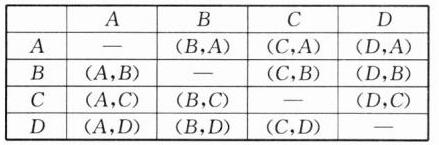 (2)解:将蒸馏水、白醋溶液、食用碱溶液、柠檬水溶液分别记作A,B,C,D,列表如下: