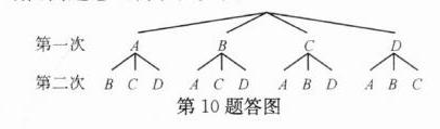 (2)小文从中随机抽取一张(不放回),再从中随机抽取一张,请用画树状图或列表的方法求小文抽到的两张邮票恰好是“立春”和“立夏”的概率(这四张邮票依次用字母A,B,C,D表示).