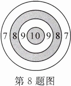 8. 在世界军人运动会中,我国军人运动员屡创佳绩,特别是在射击赛场获得很多金牌,如图是某项射击项目的射击靶示意图,其中每环的宽度与中心圆的半径相等,某运动员朝靶上任意射击一次没有脱靶,设其命中10,9,8,7的概率分别为$p_{1}$,$p_{2}$,$p_{3}$,$p_{4}$,则下列选项正确的是(