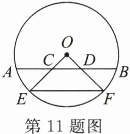 11. 如图,已知在$\odot O$中,弦$AB与半径OE$,$OF交于点C$,$D$,$AC= BD$,求证: