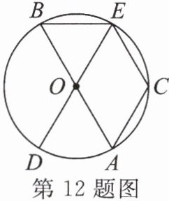 12. 如图,在$\odot O$中,$AB$,$DE为\odot O$的直径,$C是\odot O$上一点,且$\widehat {AD}= \widehat {CE}$.