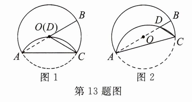 13. 在$\odot O$中,AB为直径,C为圆上一点,将劣弧AC沿弦AC翻折交AB于点D,连结CD.
