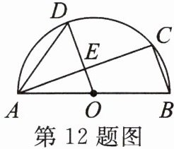 12. 如图,AB是半圆O的直径,C,D是半圆O上的两点,且$OD// BC$,OD与AC交于点E.