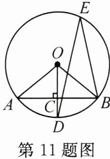 11. 如图,AB是$\odot O$的弦,半径$OD⊥AB$,垂足为C,点E在$\odot O$上,连结OA,OB,DE,BE.